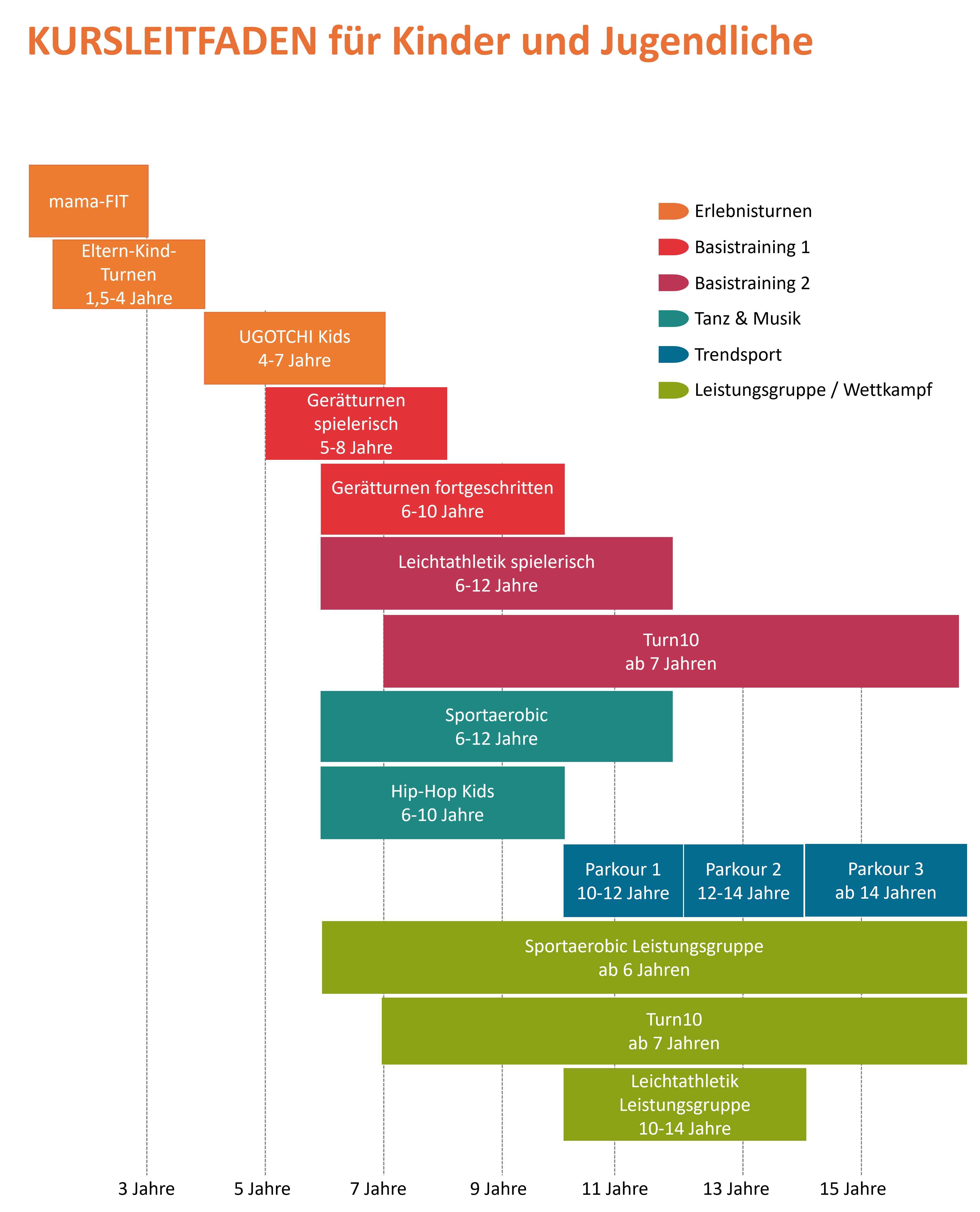Der Kursleitfaden dient als Orientierung zur Auswahl des richtigen Kurses für Kinder und Jugendliche.